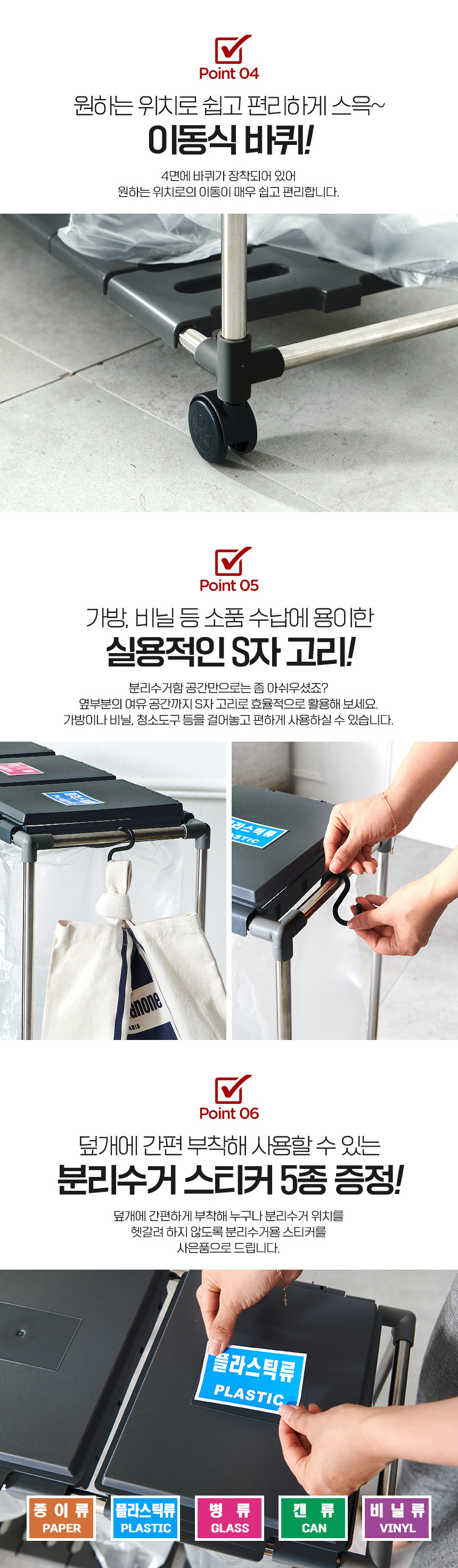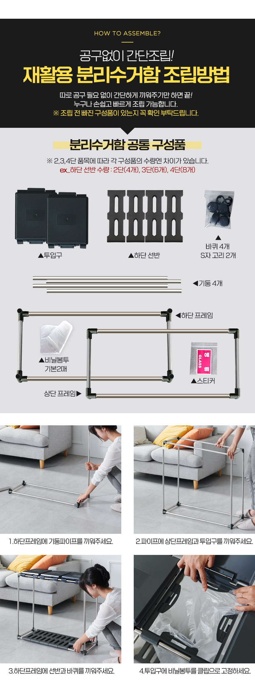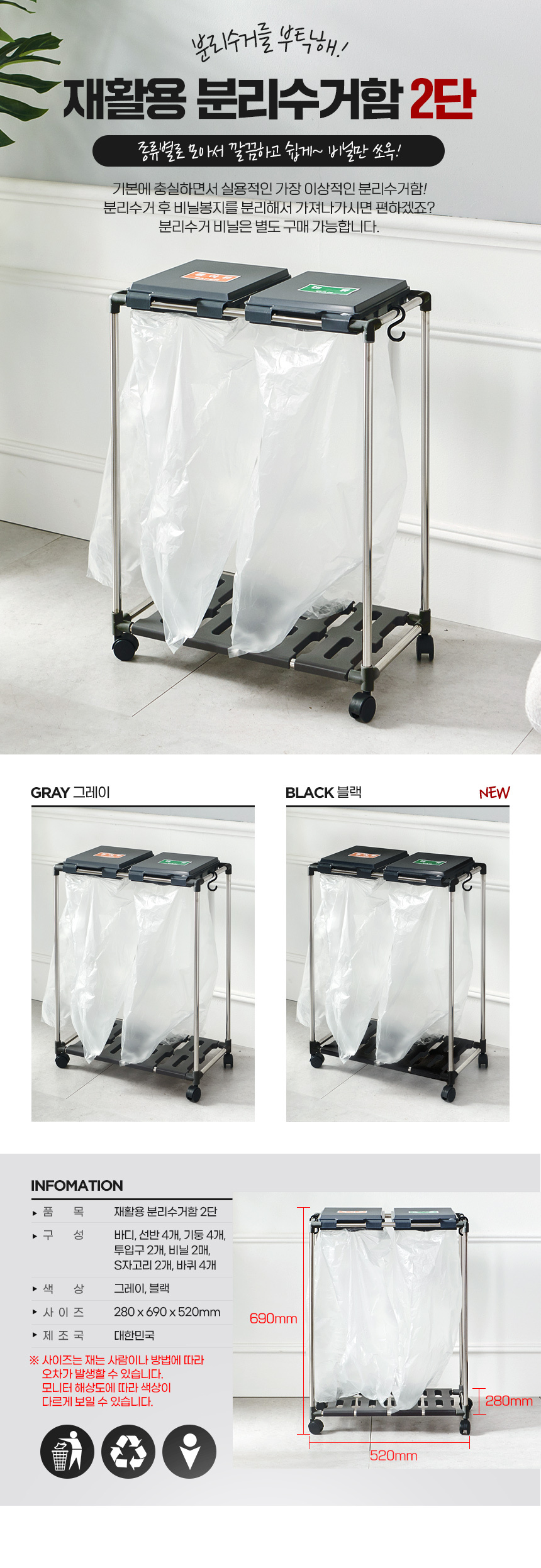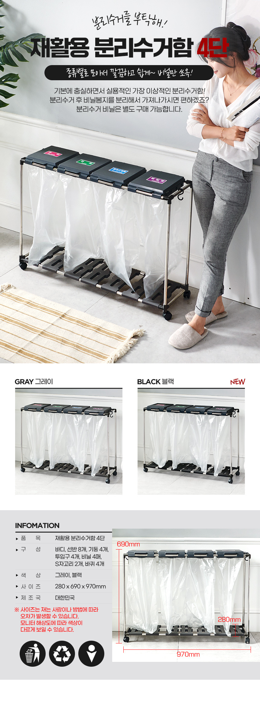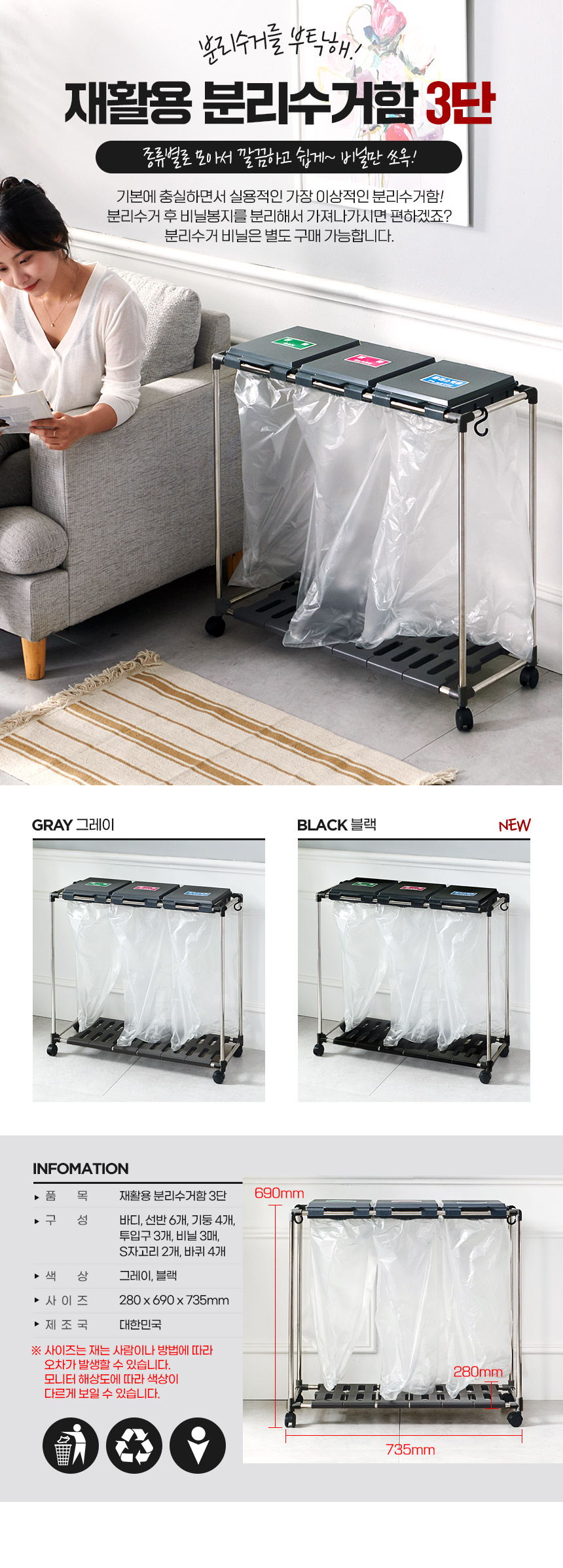 HOME > 가정용 재활용 분리수거함 사무실 쓰레기통 휴지통 2단 3단 4단